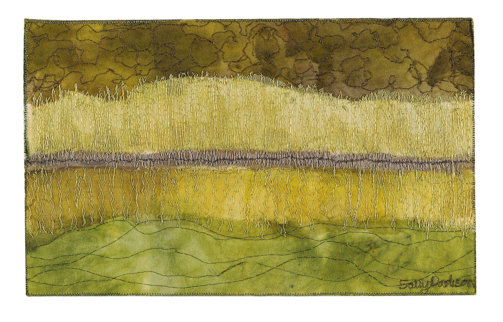 machine embroidered, hand dyed silk frmaed in Tasmanian oak frame 42.5 x 32.5 cm
